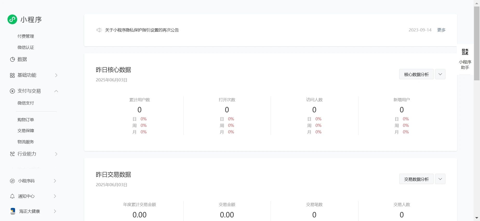 若小程序符合平台规则,经平台检测后会发送相关通知要求接入的,若未收到通知则无需理会,暂不支持申请开通。