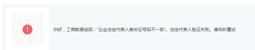 你好,工商数据返回:“企业法定代表人身份证号码不一致”。法定代表人验证失败 麻烦解决处理一下!