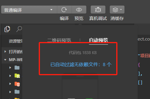 在自动预览的时候会有包的体积大小