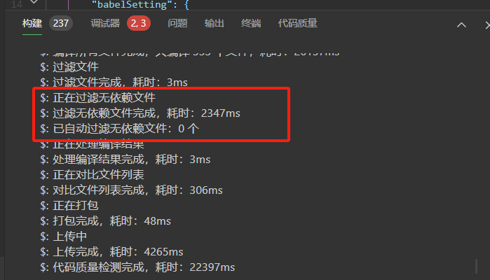 然后上传的时候会有提示 是否过滤了无依赖文件