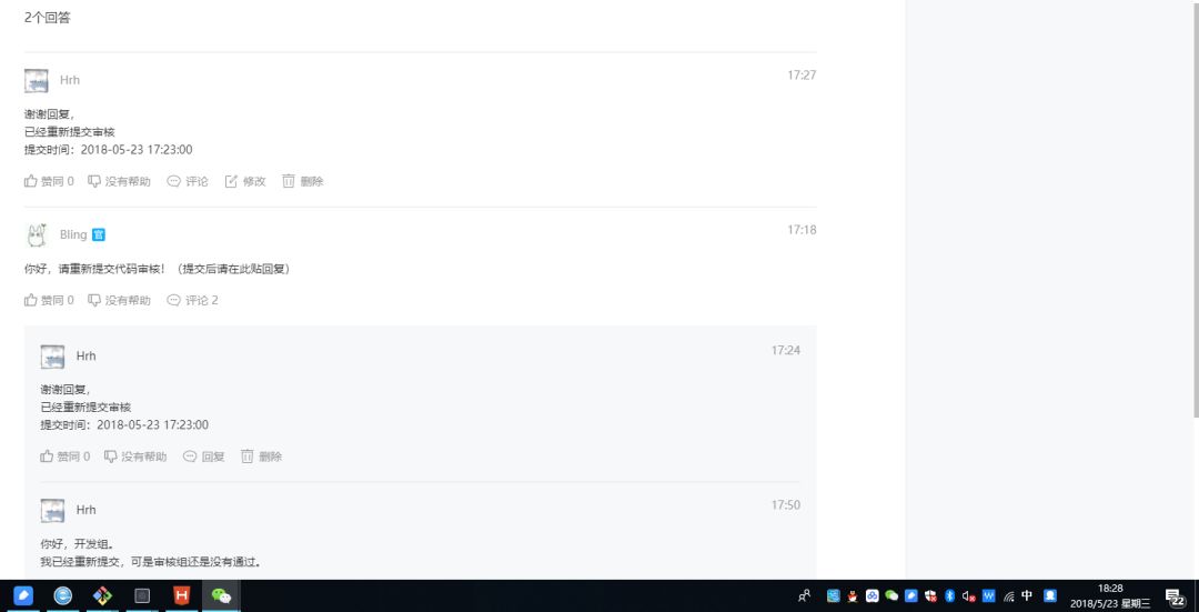 我已经再一次提交审核,提交审核时间为:2018-05-23 18:27:00