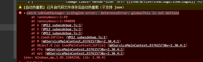 版本切换到小程序版本库2.30.4版本无法进行登录,报错以下错误,请问是为什么?求大佬解惑。