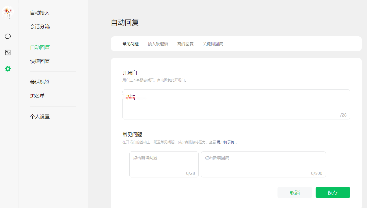 小程序的客服人员设置离线,有个自动回复的功能,会自动回复你填写的字段