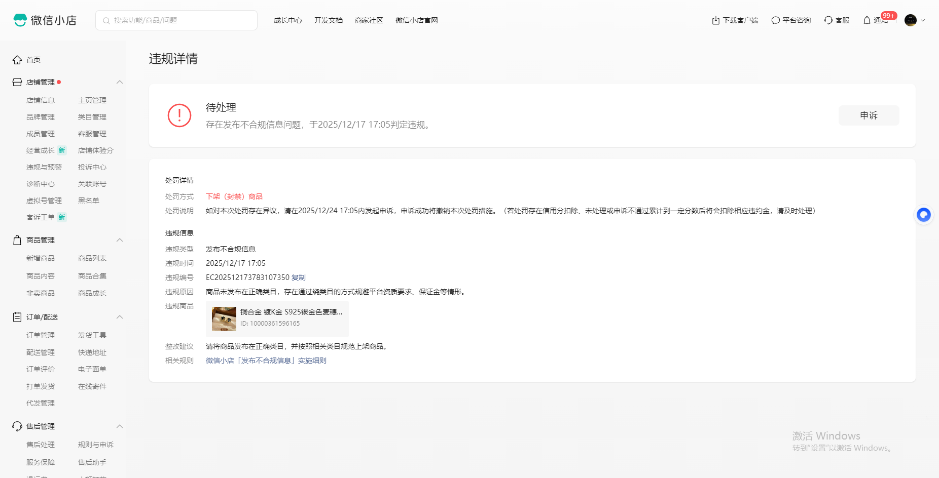 你好微信平台,我是店铺商家及带货者,我们所售卖的类目是镀金饰品,所售卖的产品也是镀金饰品,目前多个店铺遇到多条违规且无法解决的错放类目和绕类目问题,问服务商寻求帮助,服务商问平台小二解释说放到珍珠类目,珍珠属于入仓类目,时尚饰品属于非入仓类目,并不可混淆售卖,问官方客服是说放到坦桑石类目,目前已经不知道该如何放到正确类目呢,咱们的产品标题和链接都是按照规范和实际材质去上架的,就像珍珠的产品,我们也会在标题上写明非珍珠仿珍珠,及树脂材质和玻璃材质,望回复解决