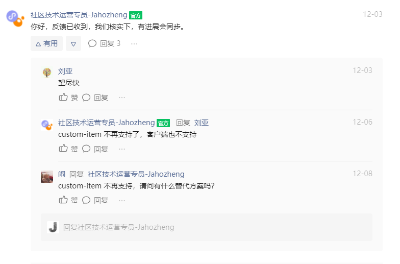 很幸运,不需要等到 2025 年,3 天后,官方就给出了答复,custom-item 不再支持了