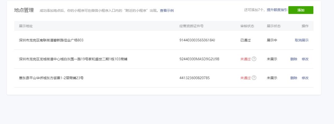 提交多次附近小程序,两家店都是公司的直营店,门店法人和公司法人是同一个人,也写了对应的证明函加印公章,还是审核不过,请教具体原因和流程