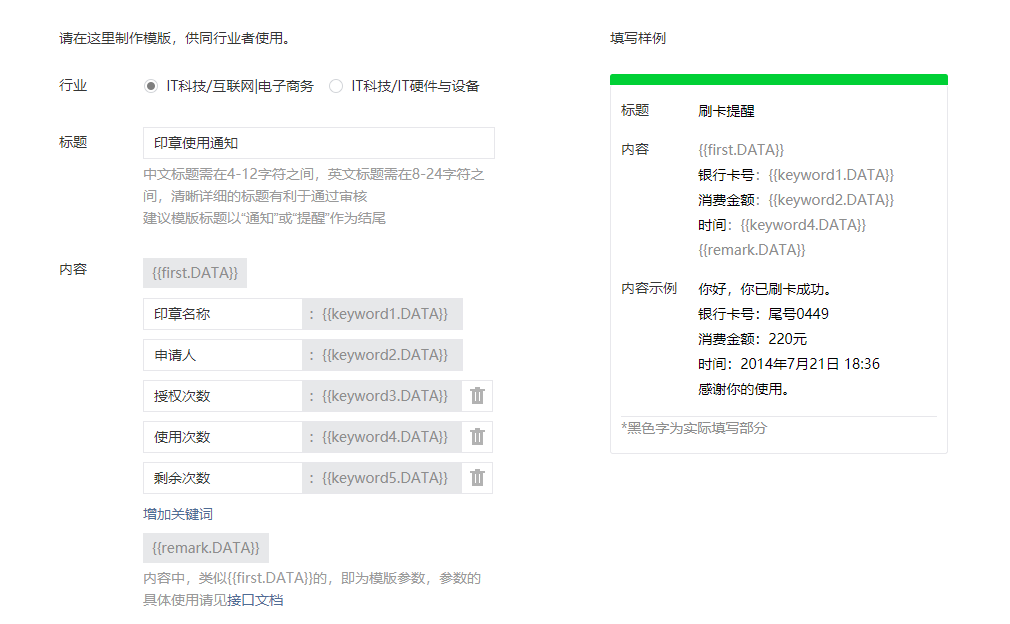 标题:印章使用提醒不适用于“IT科技/互联网/电子商务”行业,请重新选择正确对应行业;