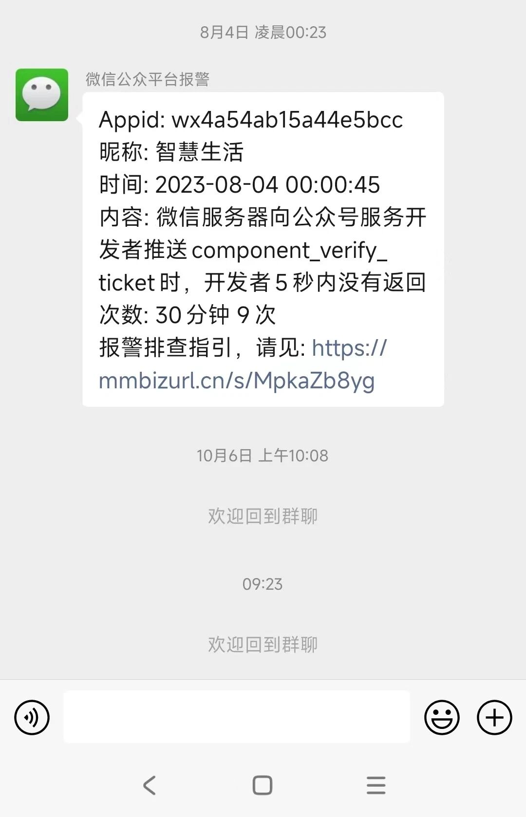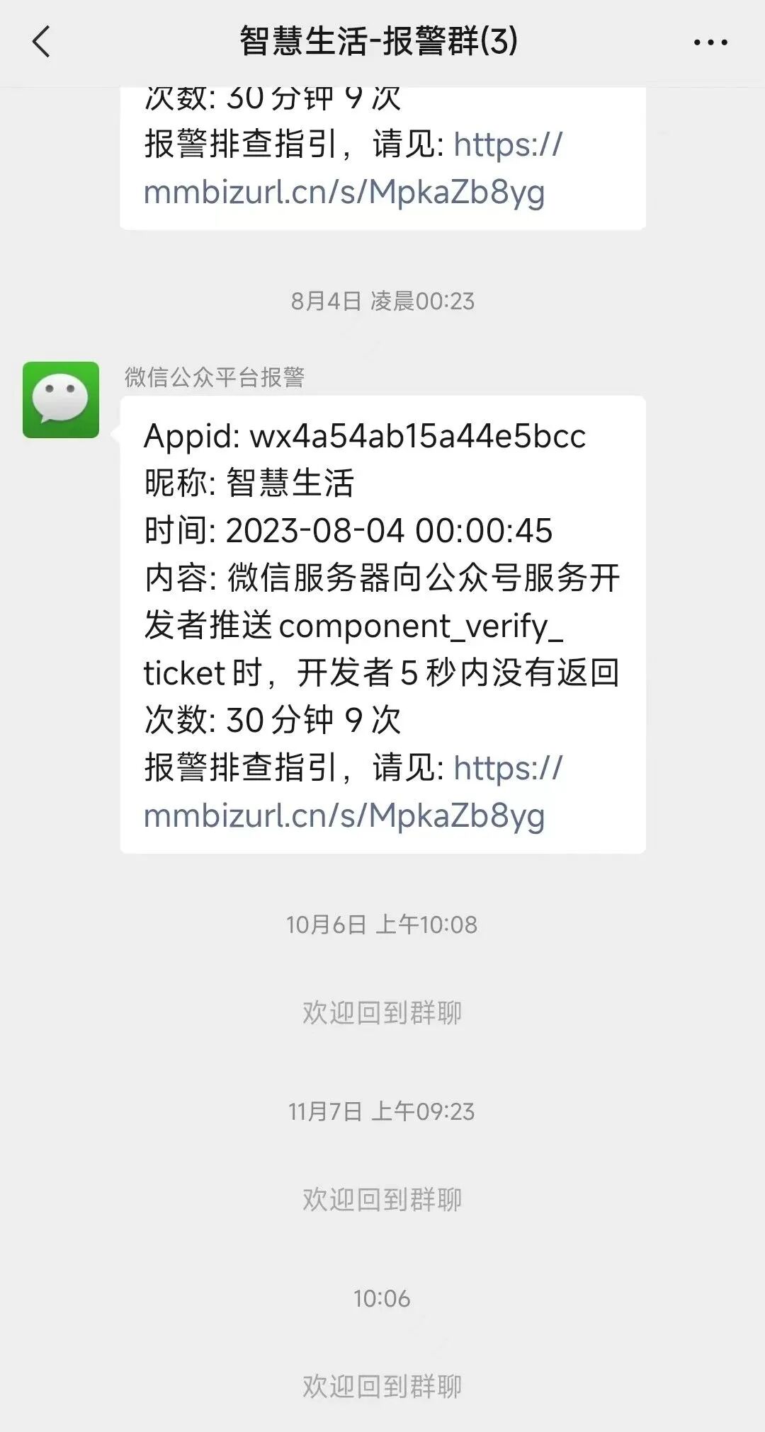 微信开放平台下的第三方平台,八月份后告警群一直收不到平台报警,如何处理?