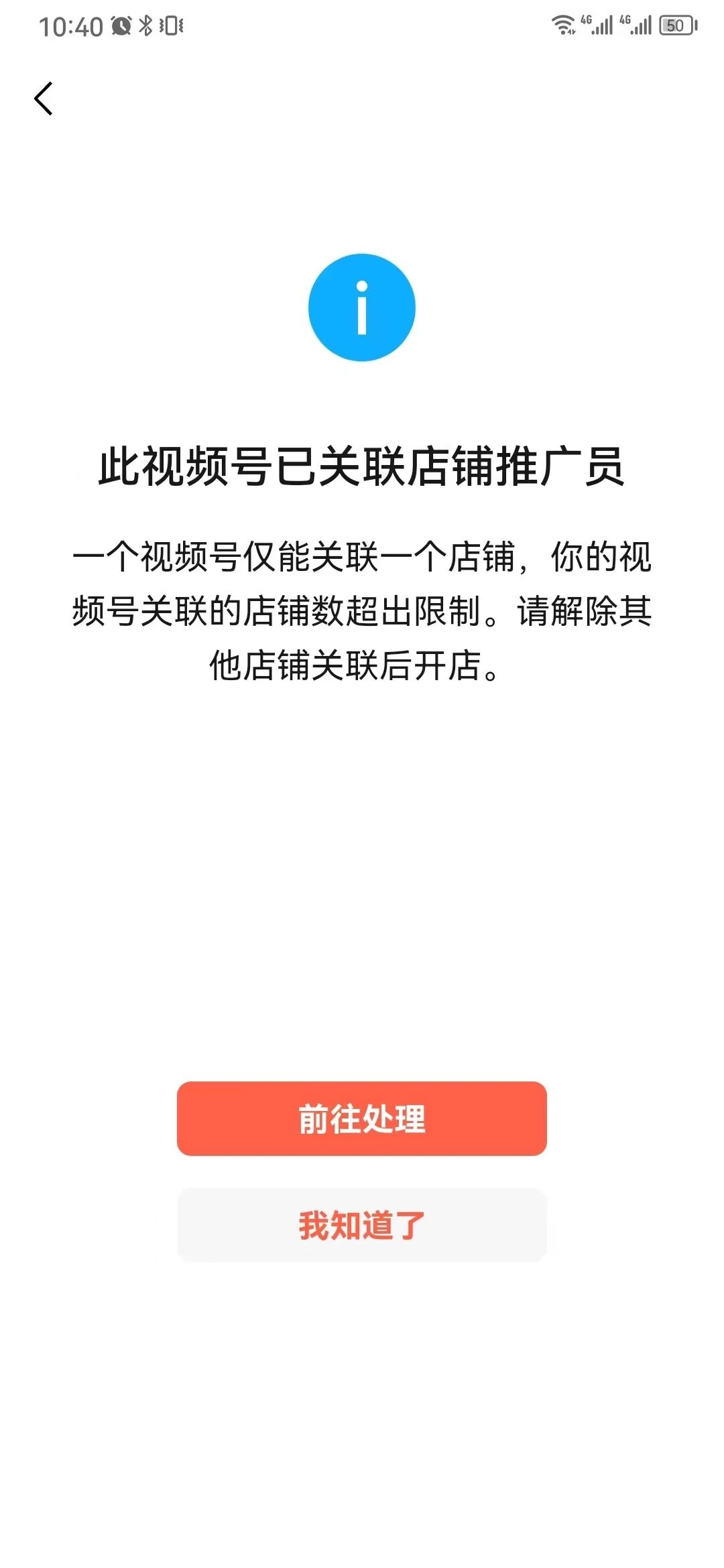 你的视频号已经关联了其他的视频号小店吧。