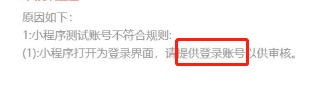 在备注里填写测试账号和密码,官方的人根本不看的。我就是把账号和密码写到了备注里了,结果还是被打回来了。说我没有提供测试账号和密码,很无语。。。。