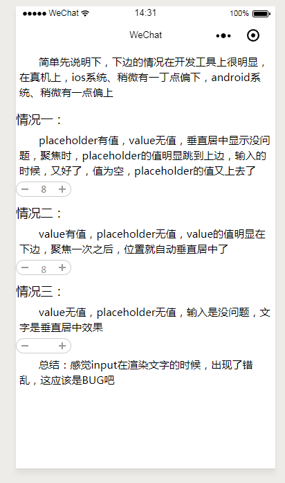 针对input的文字垂直居中,我单独做了个实验,重新编辑了此帖,存在于value 和 placeholder 是否有值造成的渲染差异,详细在代码片段中查看