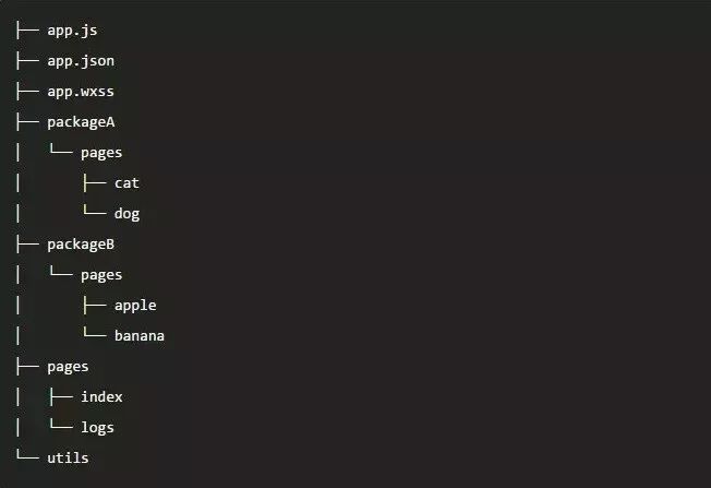 假设支持分包的小程序目录结构如下: