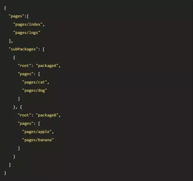 开发者通过在 app.json subPackages 字段声明项目分包结构: