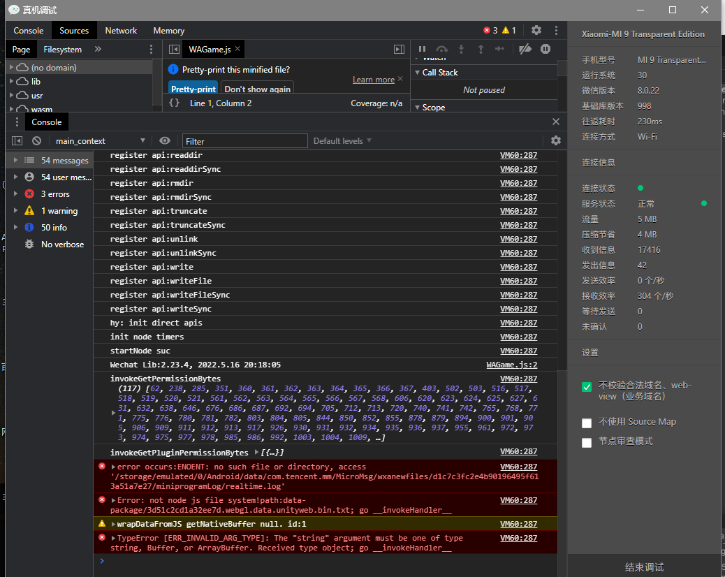 VM60:287 error occurs:ENOENT: no such file or directory, access '/storage/emulated/0/Android/data/com.tencent.mm/MicroMsg/wxanewfiles/d1c7c3fc2e4b90196495f613a51a7e27/__GAME_FILE_CACHE/__PATCH_DIR'