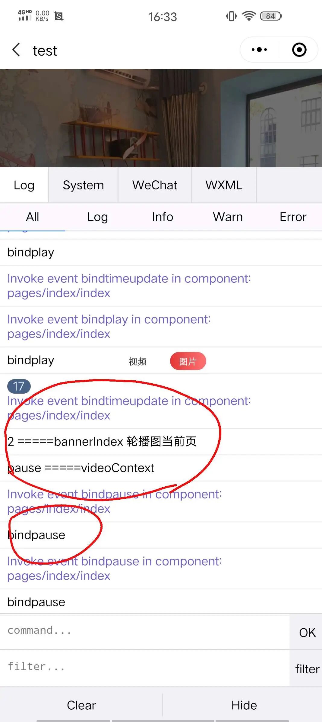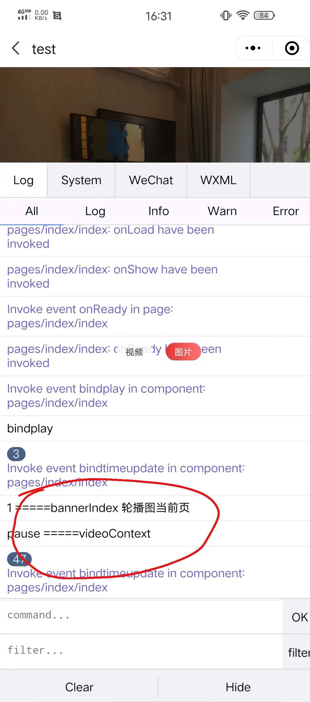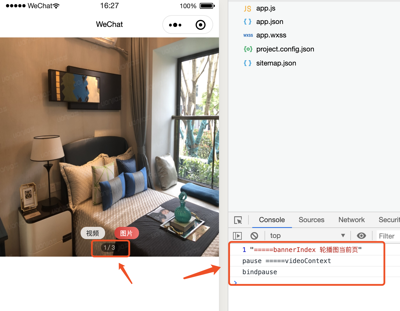 预期效果: 当左右滑动轮播图时,如果当前页不是【视频】则暂停播放。