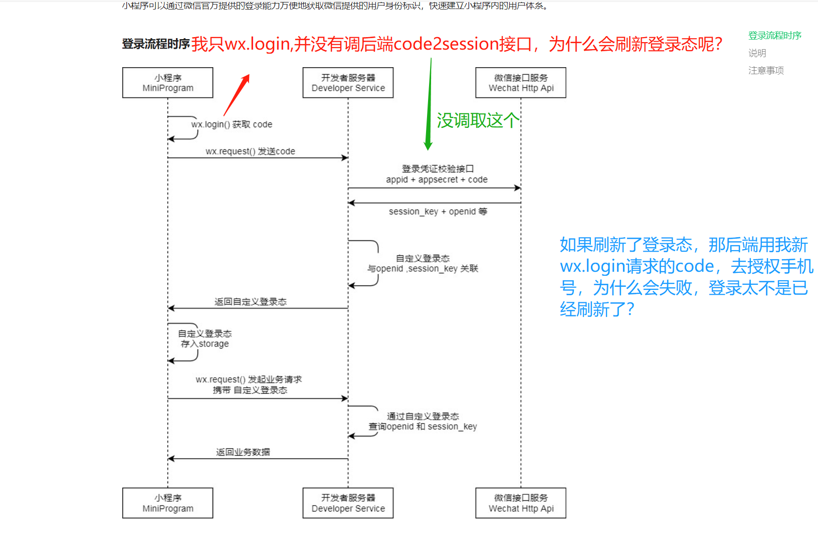 在回调中调用 wx.login 登录,可能会刷新登录态。此时服务器使用 code 换取的 sessionKey 不是加密时使用的 sessionKey,导致解密失败。建议开发者提前进行