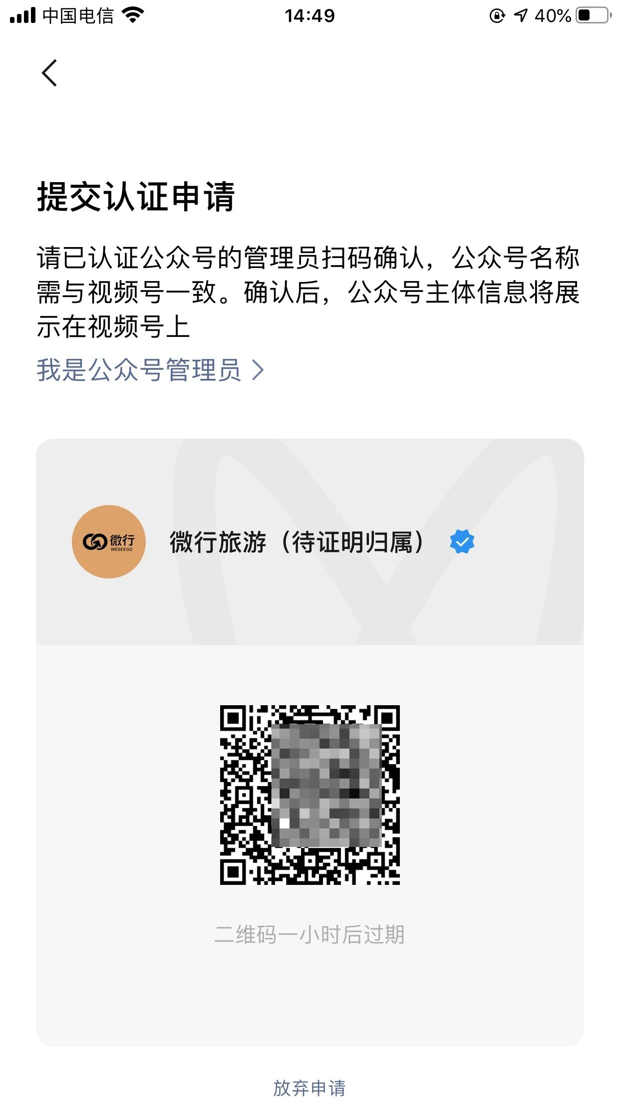 经查,公众号“微行旅游”有过改名记录且改名前已认证其他视频号,建议你们内部自查该公众号认证的视频号。