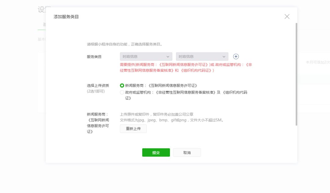 你好,涉及时政信息-时政信息类目,需提供1.新闻服务商:《互联网新闻信息服务许可证》2.政府或监管机构:《非经营性互联网信息服务备案核准》和《组织机构代码证》类目资质详情可参考链接:https://developers.weixin.qq.com/miniprogram/product/material.html#%E9%9D%9E%E4%B8%AA%E4%BA%BA%E4%B8%BB%E4%BD%93%E5%B0%8F%E7%A8%8B%E5%BA%8F%E5%BC%80%E6%94%BE%E7%9A%84%E6%9C%8D%E5%8A%A1%E7%B1%BB%E7%9B%AE