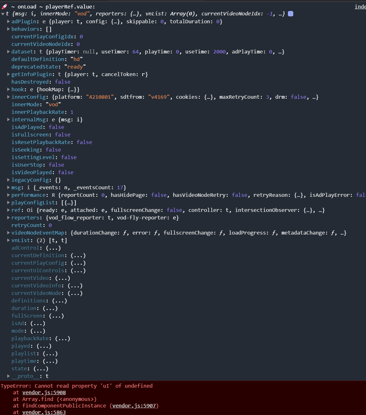初始化第一个vid直接使用play()可以播放,但是切换视频就会报错