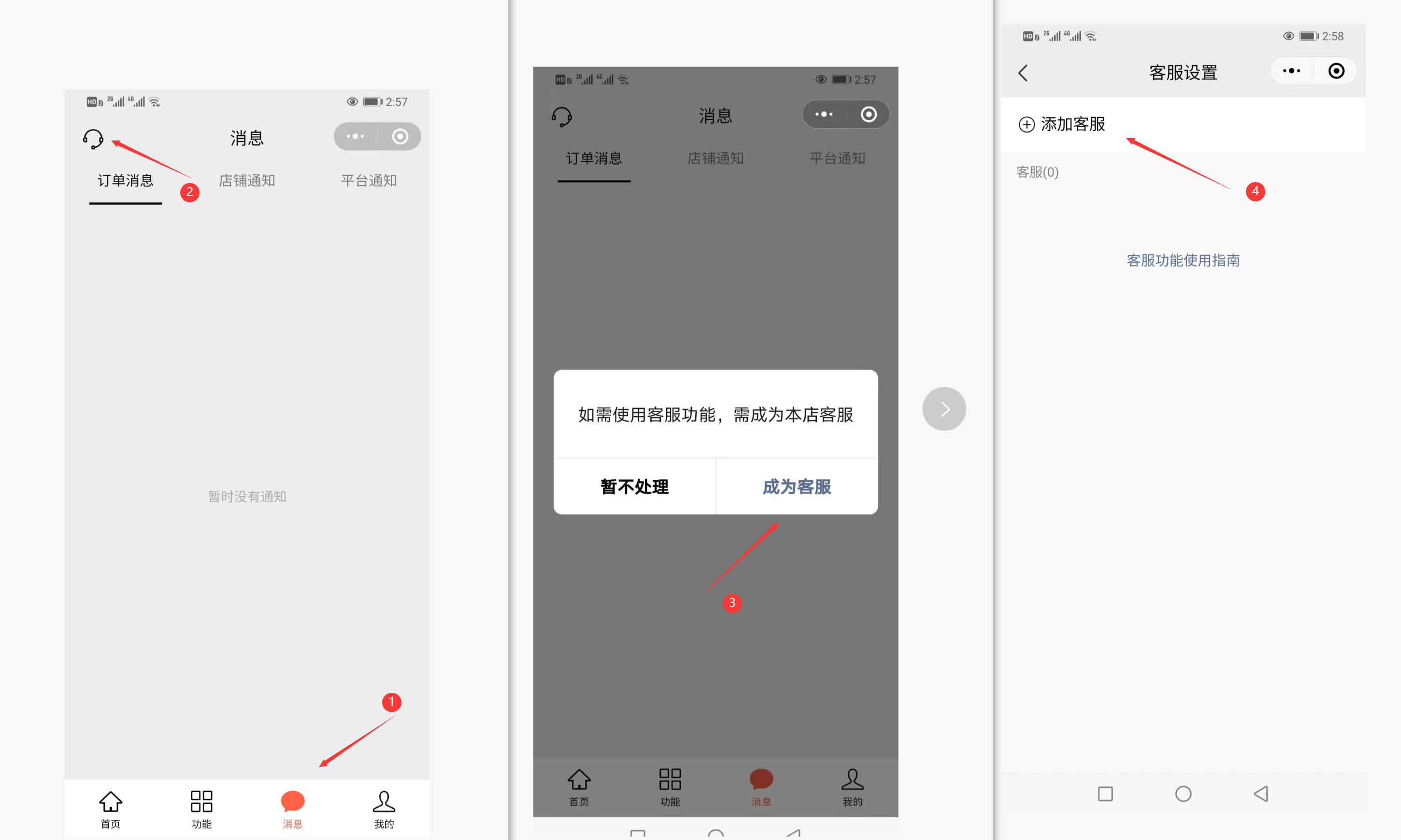 打开小商店助手,进入小商店管理,参照图片,操作绑定一下,就可以收到消息了