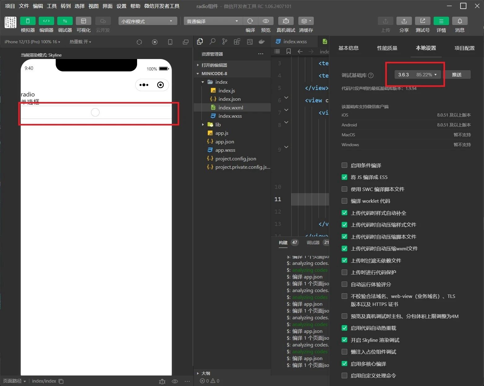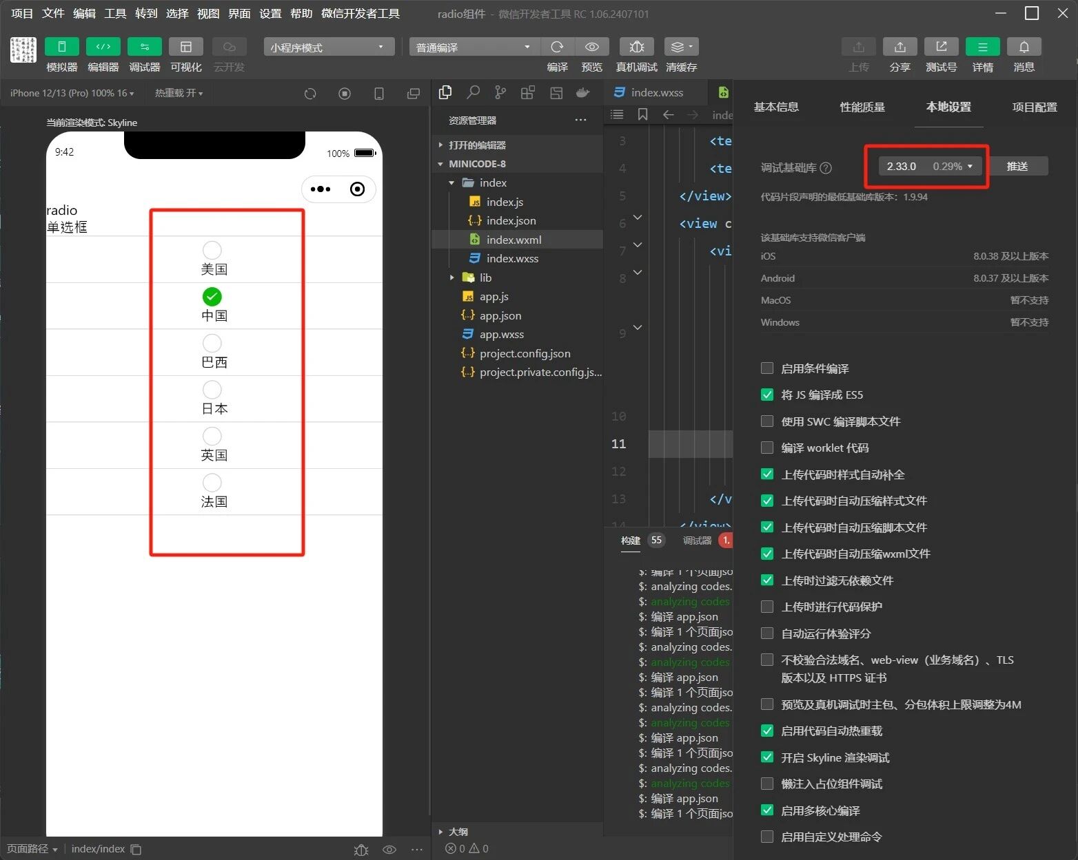 因本人小程序radio-group出现问题,特下载了radio官方示例代码到开发工具中,发现显示同样的错误,所有选项只有一个框。