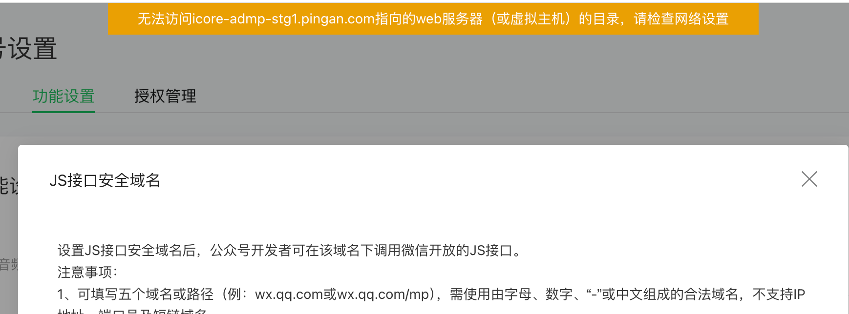 因为我们的域名做了外网访问管控,在设置js安全域名的时候,微信侧无法访问域名。
