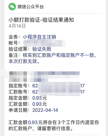 公账资料一致为什么注销不了小程序?