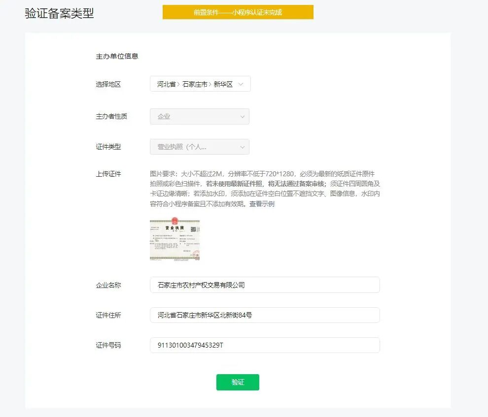 你好,企业性质小程序必须要先完成【前置条件-小程序认证】麻烦请小程序认证通过后再进行备案