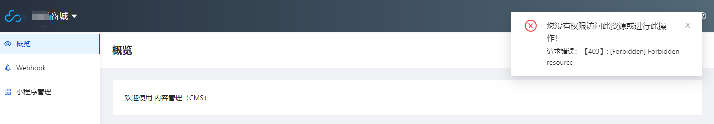 当为新创建的角色分配的项目权限不为全部时,一进入系统就会提示没有权限。