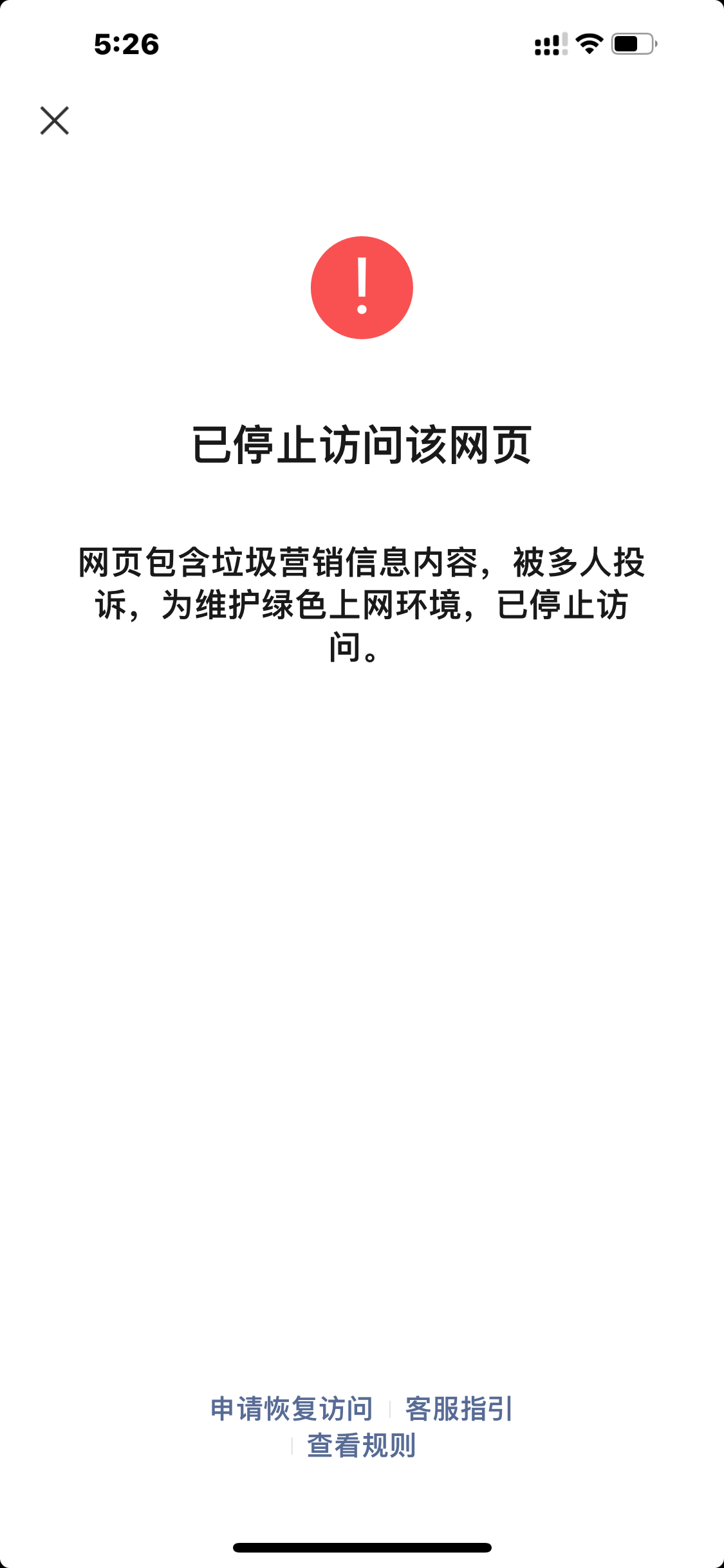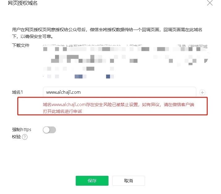 域名www.aichaji.com存在安全风险已被禁止设置,如有异议,请在微信客户端打开此域名进行申诉,这是新买的域名,公众号添加不了网页授权域名,域名是7月31号新买的,备案是8月10号通过的,这个域名没人知道,不可能存在被投诉的,我猜测是不是因为上任用户违规使用被导致限制,请求核实解除限制。