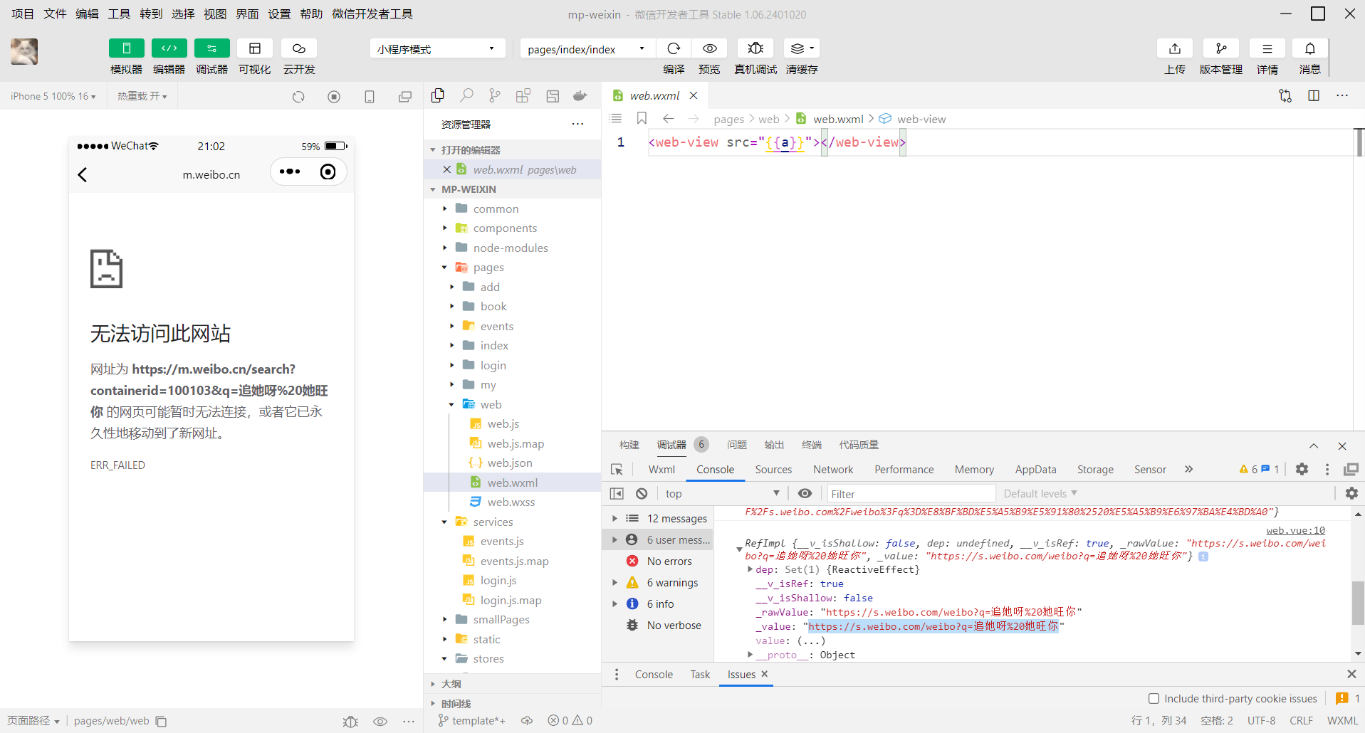 src为上图的i.value的值,但是微信小程序中访问时为下图的地址,导致无法访问