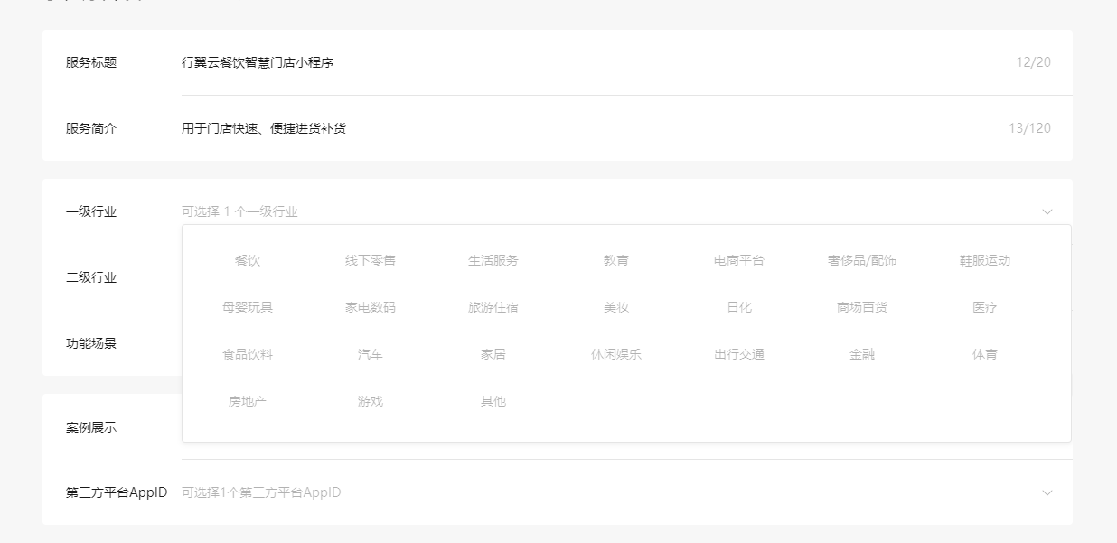 你好,入驻微信小程序开发专区,需要每一个 垂直一级行业服务类目 近30天内活跃小程序满足5个 或以上(过去30天某天DAU>100) 。如有异议你可以调取:https://developers.weixin.qq.com/miniprogram/dev/api-backend/open-api/data-analysis/visit-retain/analysis.getDailyRetain.html 该接口,查询对应行业DAU>100的小程序。