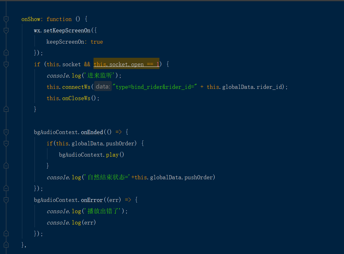 我在全局app.js顶部上创建了wx.getBackgroundAudioManager(),然后我想每次监听socket之后,都调用这个播放一次提醒接单,但是在真机调试的时候手机一进入后台后就无法再次调用播放,并且报错。在论坛翻了好多帖子,说把.stop换成.pause,每次进入后台的之前都要提前调用一次播放,在后台才能再次有效的调用播放,我测试了有点效果,但我总不能一直这样吧?急急急,是不是我的语法有问题呢?求大佬们赐教,已经弄了一天一夜,实在没有办法了。