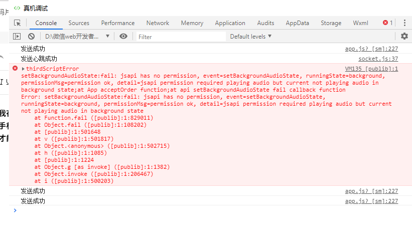 setBackgroundAudioState:fail: jsapi has no permission, event=setBackgroundAudioState, runningState=background, permissionMsg=permission ok, detail=jsapi permission required playing audio but current not playing audio in background state;at App acceptOrder function;at api setBackgroundAudioState fail callback function