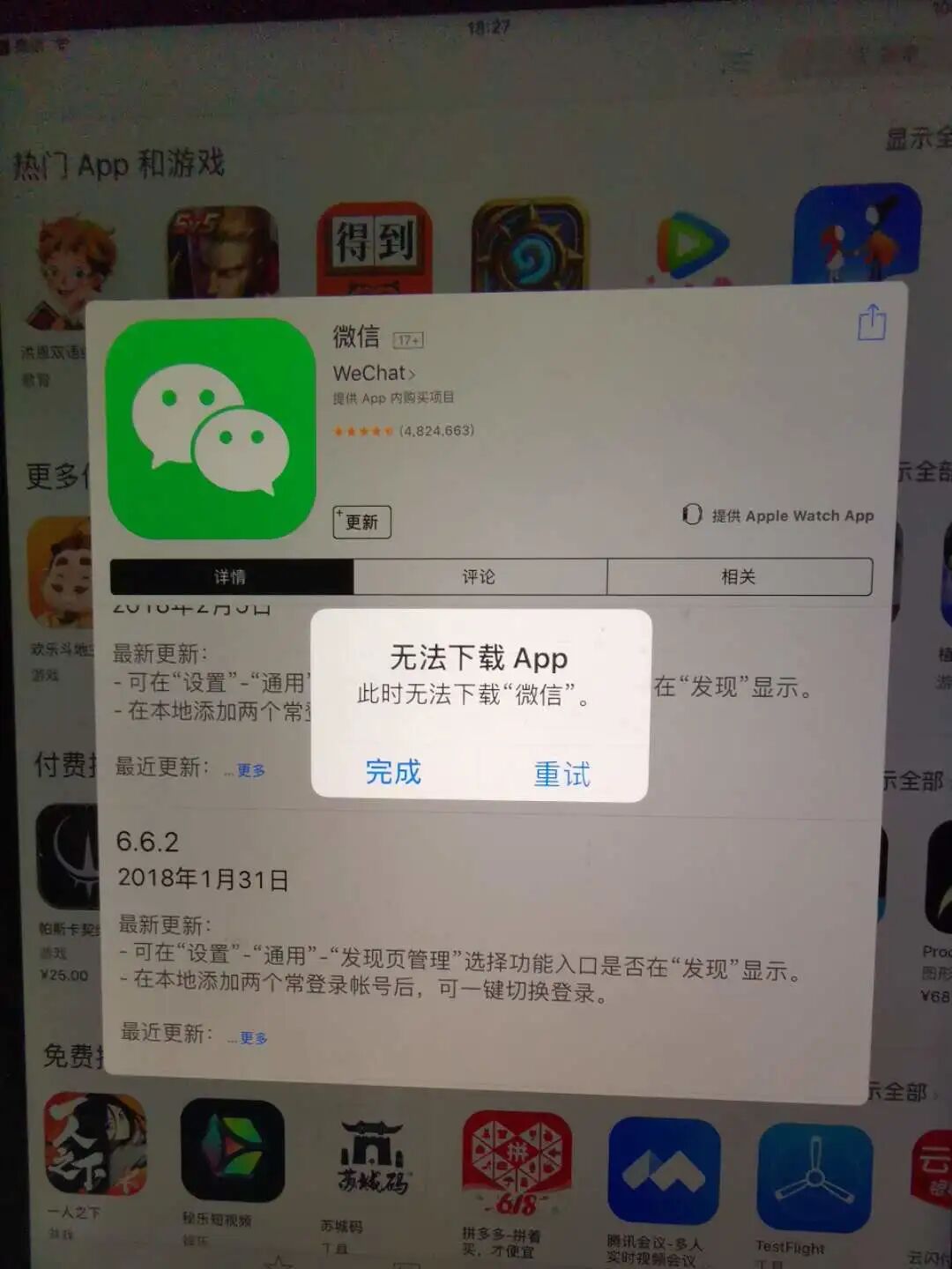 IPAD4(ios 10.3.4)无法登陆微信,提示版本低,但升级也无法登陆,如何处理?!