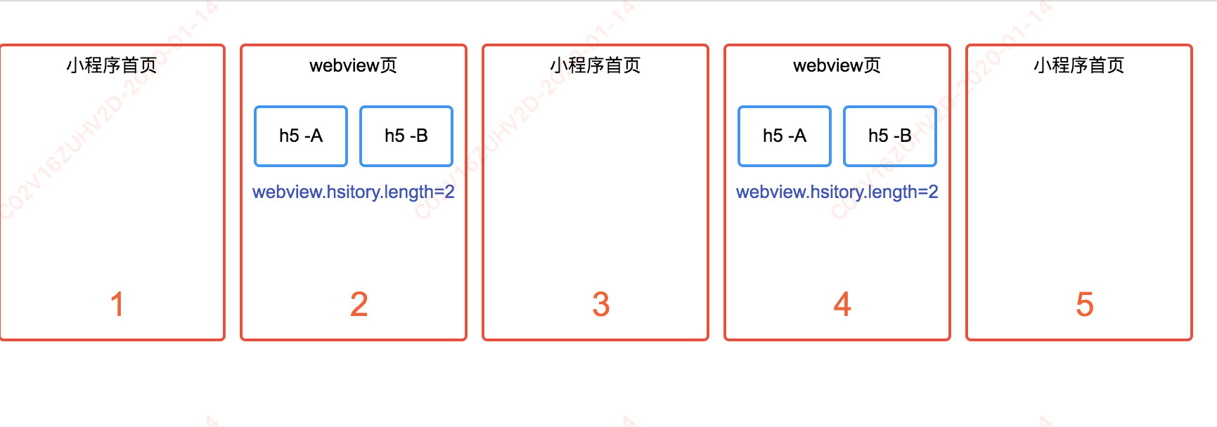 小程序页面A ---> 小程序页面B(包含webview) ---> 小程序页面C ---> 小程序页面D ---> 小程序页面E -