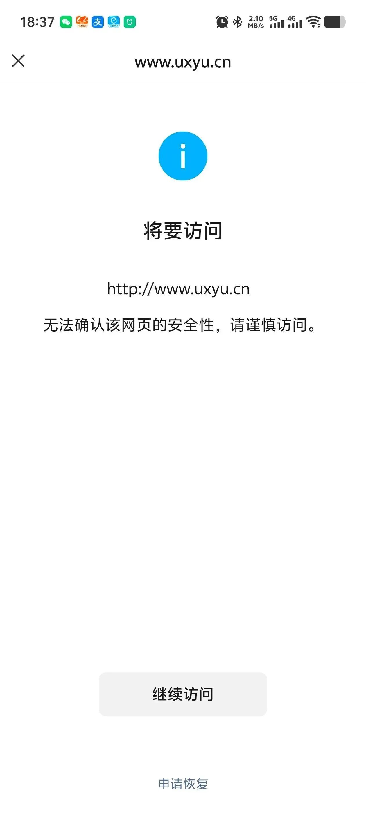 域名:https://www.uxyu.cn提示网络安全性未知,网站类型为个人博客,域名为2025年6月18日新购域名,自查无违规内容,提示违反相关规定,但是已经按要求申请,并通过审核解封,麻烦审核一下。