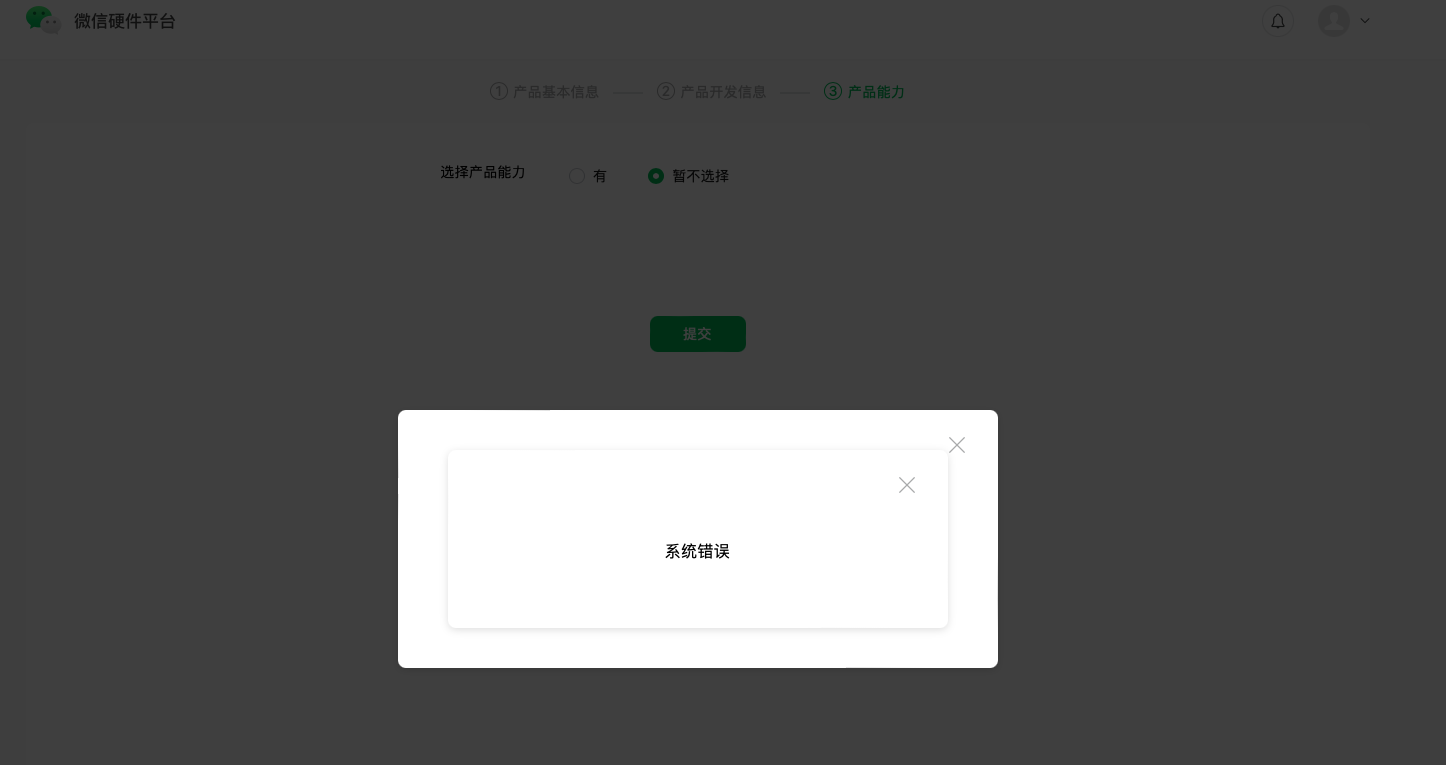 微信硬件平台添加产品 报系统错误 需要怎么解决?