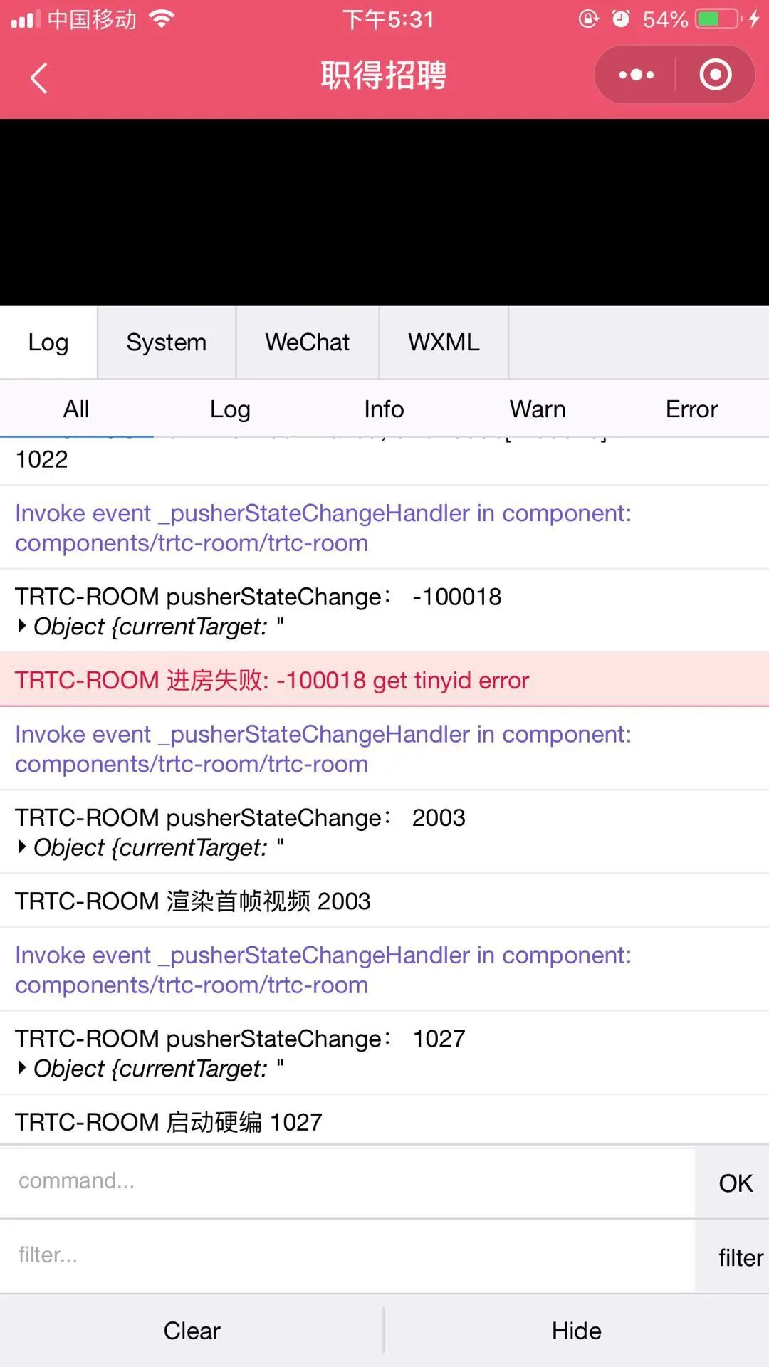 体验版、真机调试 都成功接通过一次,之后就总是报错进房失败,