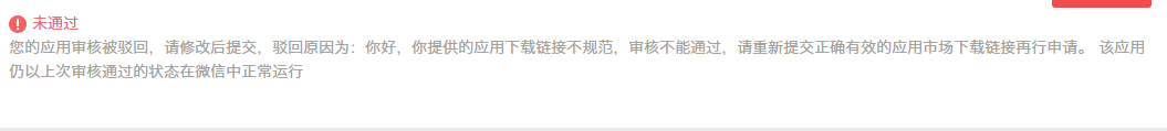 修改icon的时候才发现必须要填上架信息……修改了三回了,每次都被驳回,提示:驳回原因为:你好,你提供的应用下载链接不规范,审核不能通过,请重新提交正确有效的应用市场下载链接再行申请。