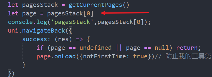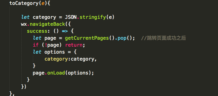 试了一下楼上回答的确实是这样,照如下这样在navigateBack之前把页面存在变量里,然后后面success正常调用就行了