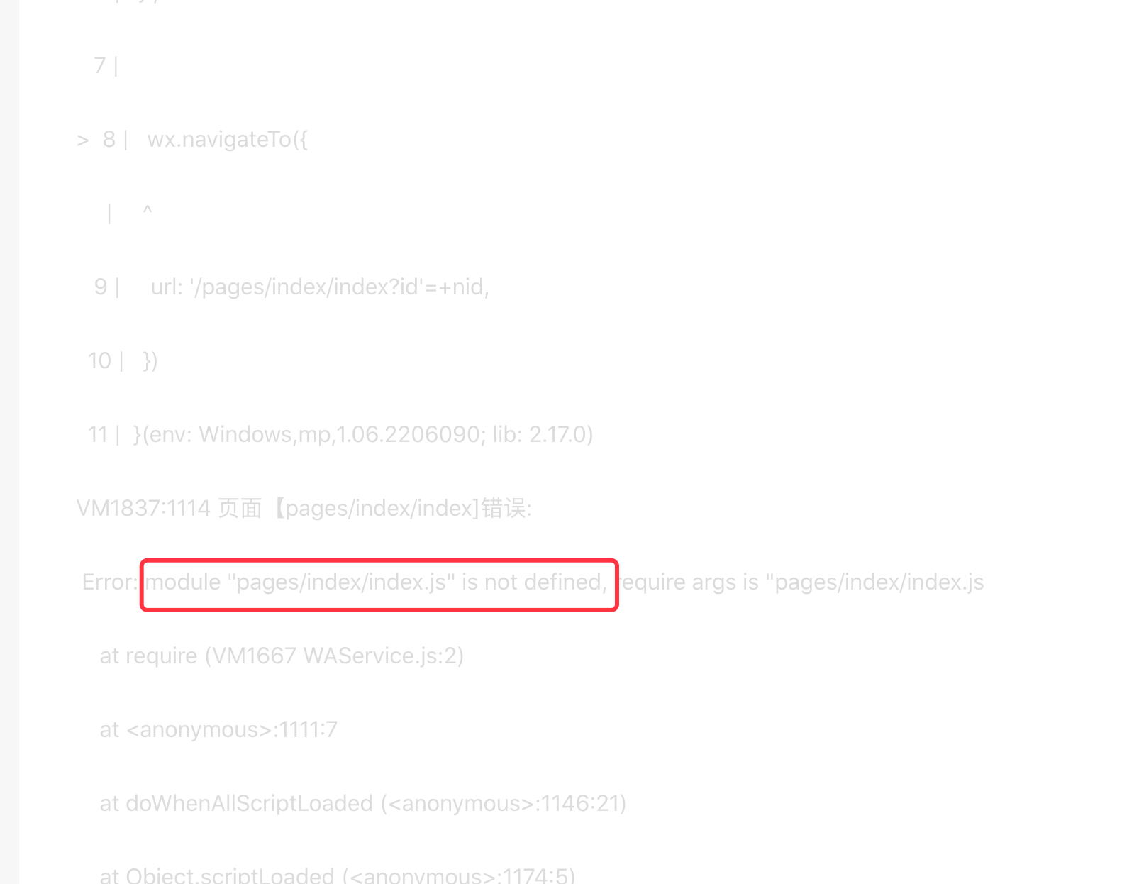 Error: module "pages/index/index.js" is not defined, require args is "pages/index/index.js