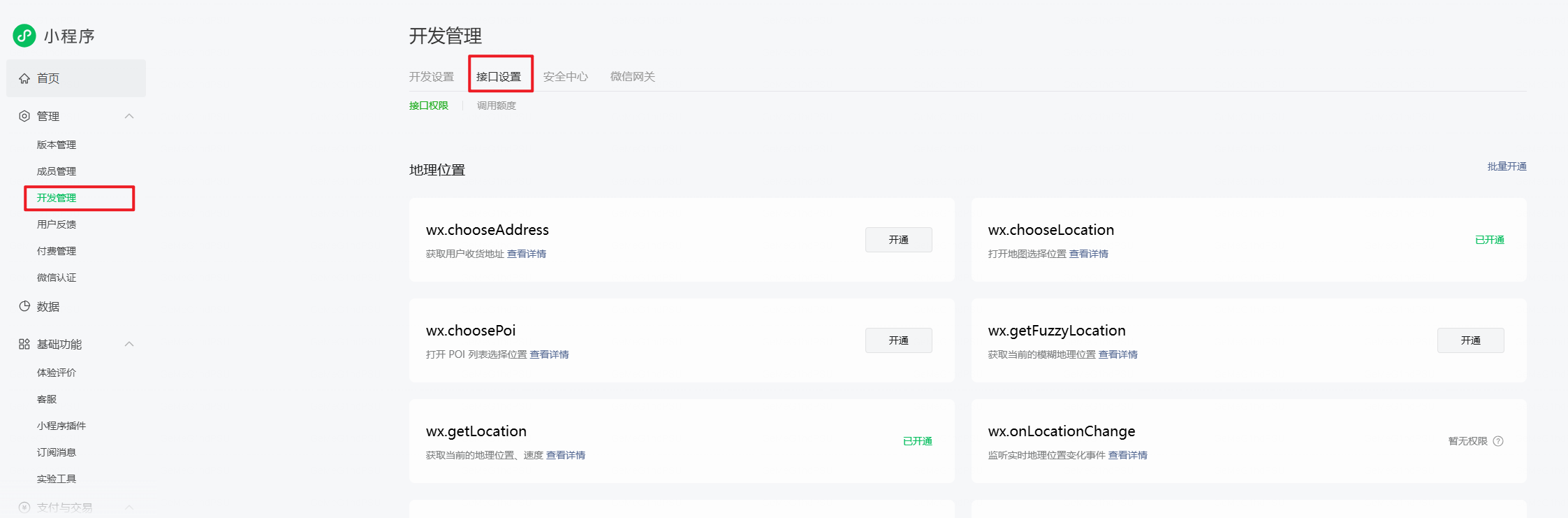 为什么我的小程序后台没有位置服务管理入口 AppID:wxcbf54daad9b77e31