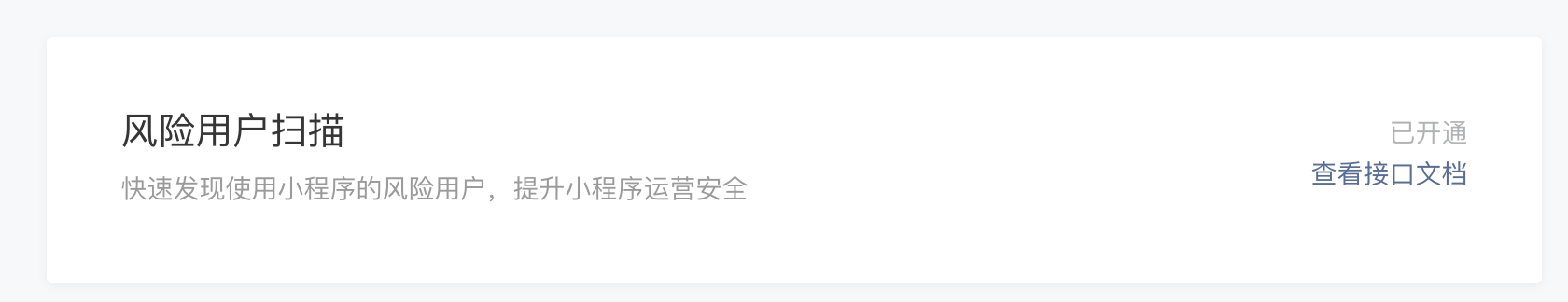 API: https://developers.weixin.qq.com/miniprogram/dev/api-backend/open-api/safety-control-capability/riskControl.getUserRiskRank.html