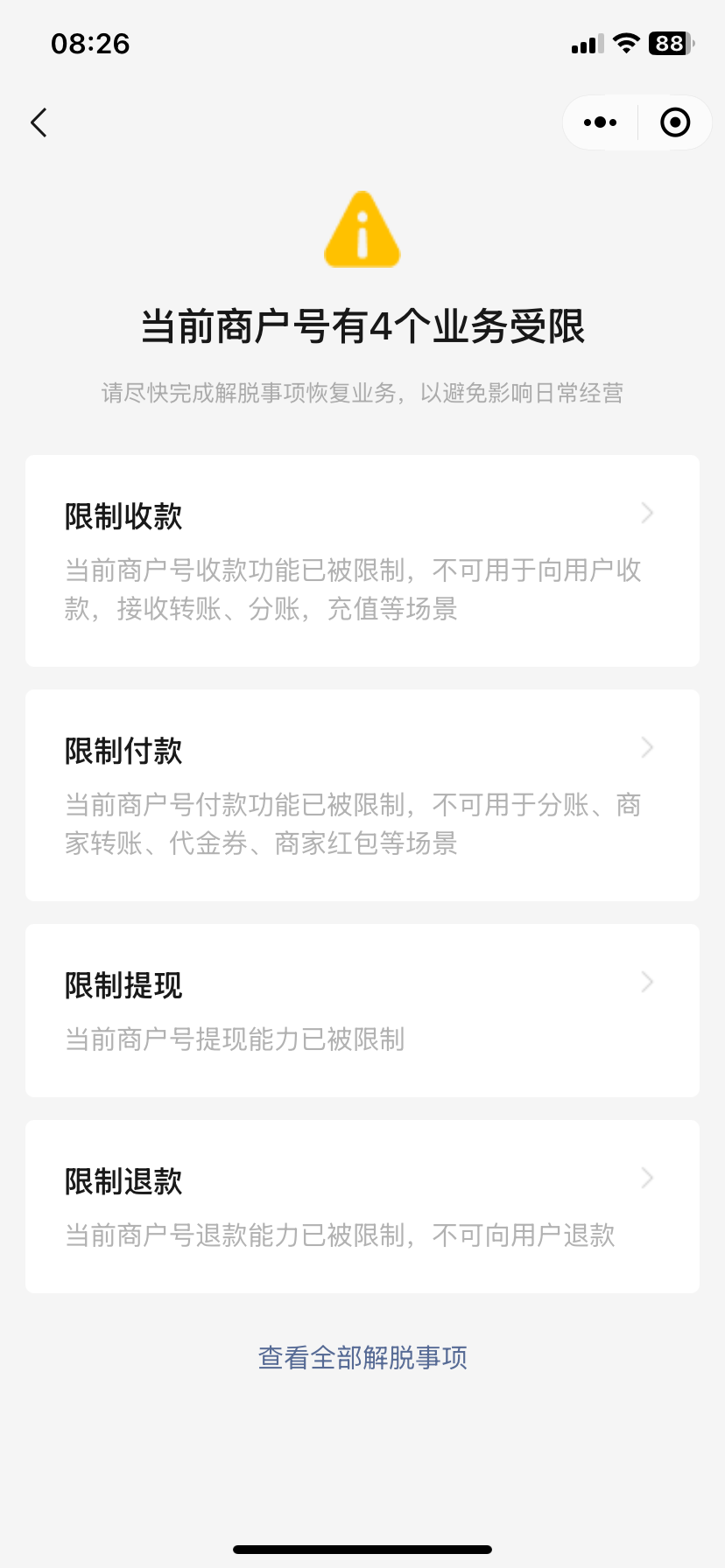 可以调解冻/完结接口进行完结分账,分账失败的钱会解冻回商户,然后再提现注销商户号即可:微信支付商户号注销及资金提取申请说明函模版:https://kf.qq.com/faq/231228UB7zqY231228YF3uiM.html