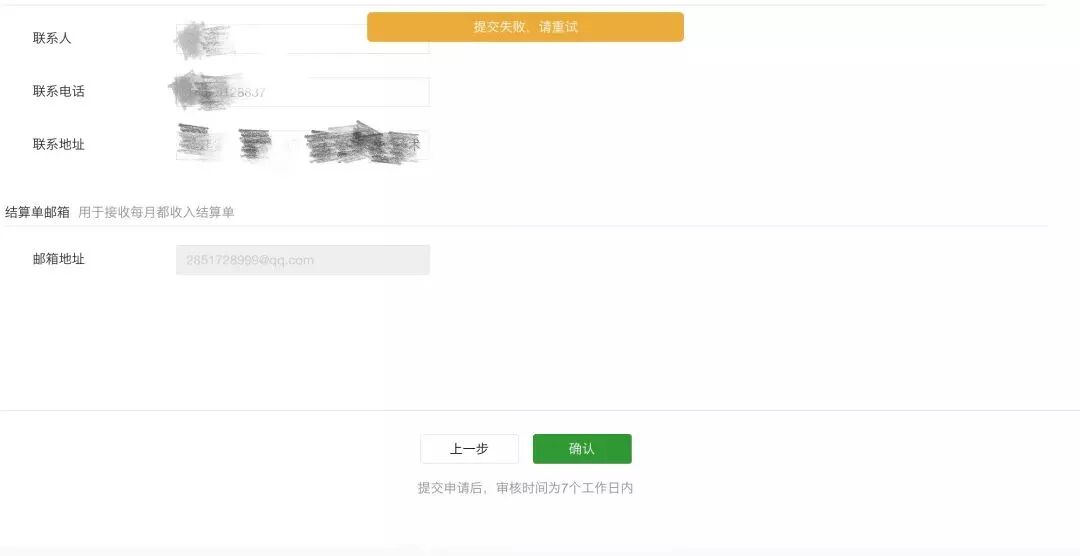所有资料都提交完毕后,最后一步点击提交的时候,会显示提交失败。