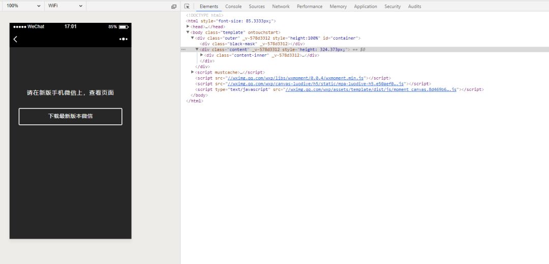 - 如图,在下刚刚开始学习前端,在手机端能正常观看的H5网页,在开发者工具就不能看了,有什么办法能让开发者工具也像移动端一样查看呢