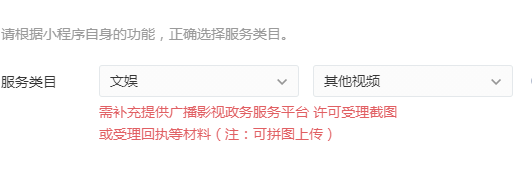 若小程序已接入文娱-视频插件,暂不需补充文娱-视频类目。审核将以实际提交的小程序服务内容为准。