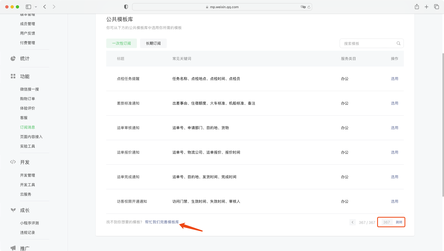 想申请订阅模板,没找到地方、订阅消息那里没有添加
