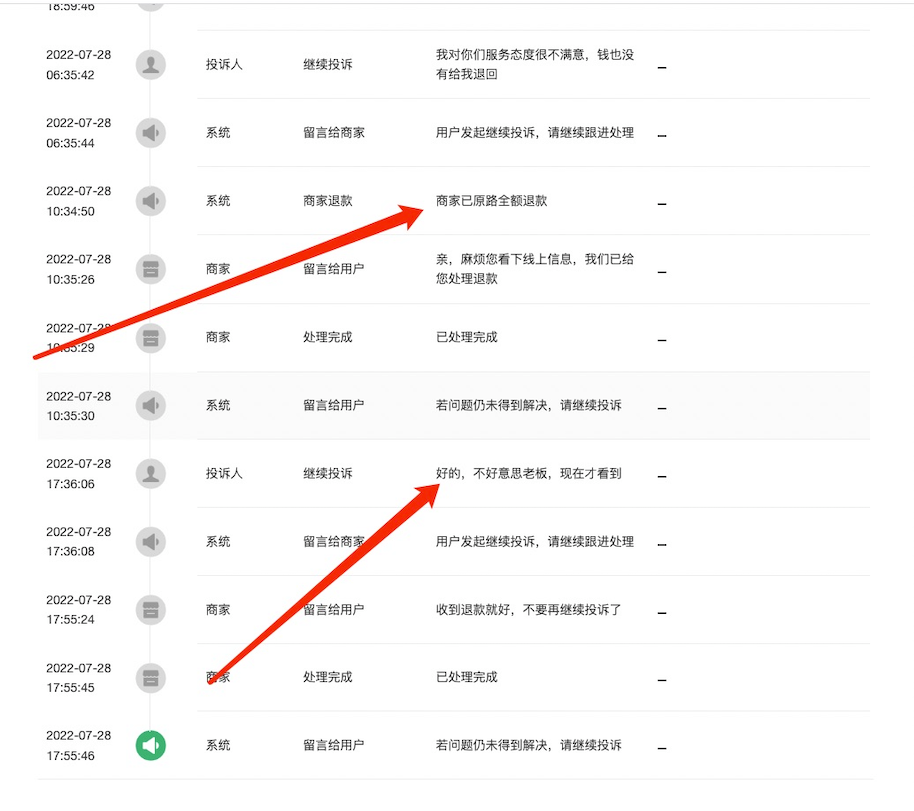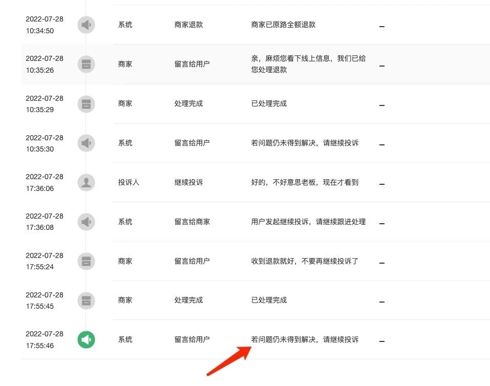 请官方回答一下这个问题,此笔交易我司已全额退款原路返回。为什么用户还能继续就此单进行投诉? 如果用户恶意性的一直针对此单投诉并回复呢?